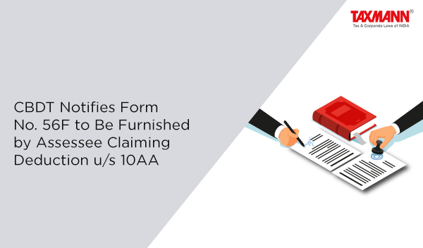The post CBDT Notifies Form No. 56F to Be Furnished by Assessee Claiming Deduction u/s 10AA appeared first on Taxmann Blog.