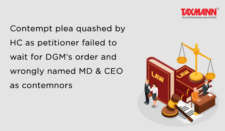 The post Contempt plea quashed by HC as petitioner failed to wait for DGM’s order and wrongly named MD & CEO as contemnors appeared first on Taxmann Blog.