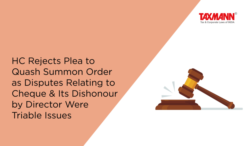 The post HC Rejects Plea to Quash Summon Order as Disputes Relating to Cheque & Its Dishonour by Director Were Triable Issues appeared first on Taxmann Blog.