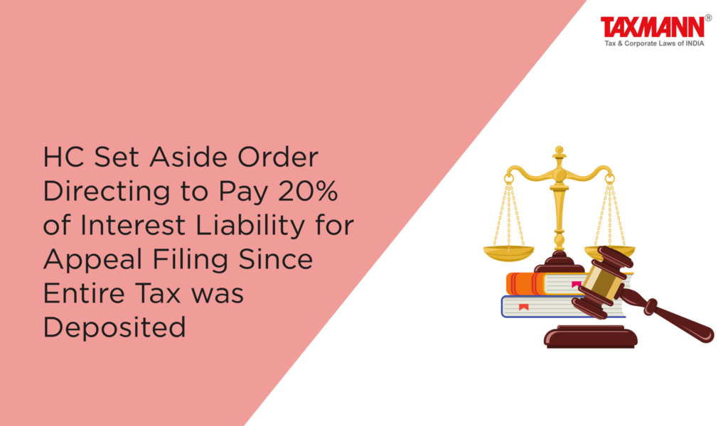 The post HC Set Aside Order Directing to Pay 20% of Interest Liability for Appeal Filing Since Entire Tax was Deposited appeared first on Taxmann Blog.