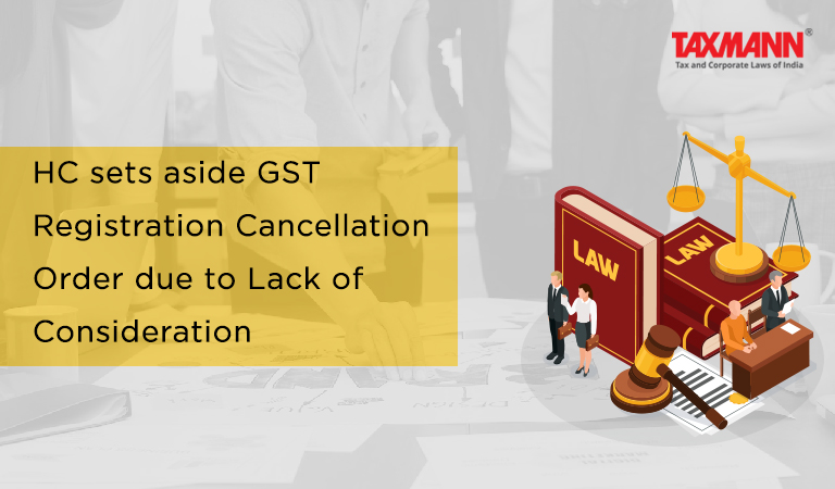 The post HC sets aside GST Registration Cancellation Order due to Lack of Consideration appeared first on Taxmann Blog.