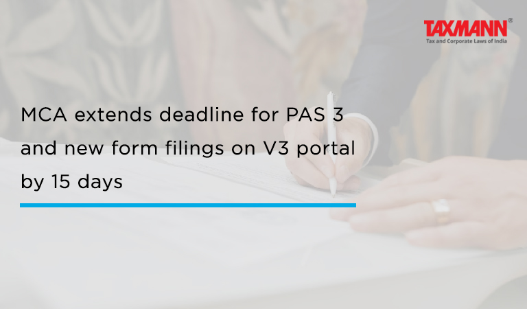 The post MCA extends deadline for PAS 3 and new form filings on V3 portal by 15 days appeared first on Taxmann Blog.