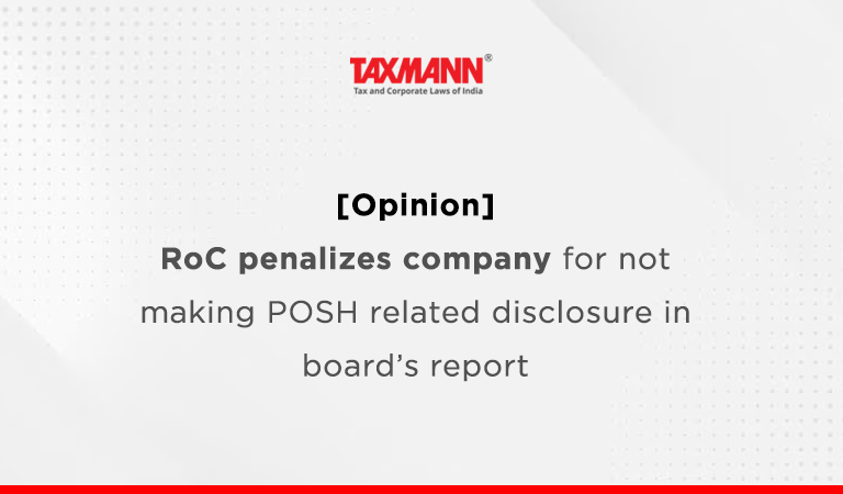 The post [Opinion] RoC penalizes company for not making POSH related disclosure in board’s report appeared first on Taxmann Blog.