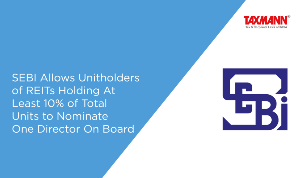 The post SEBI Allows Unitholders of REITs Holding At Least 10% of Total Units to Nominate One Director On Board appeared first on Taxmann Blog.
