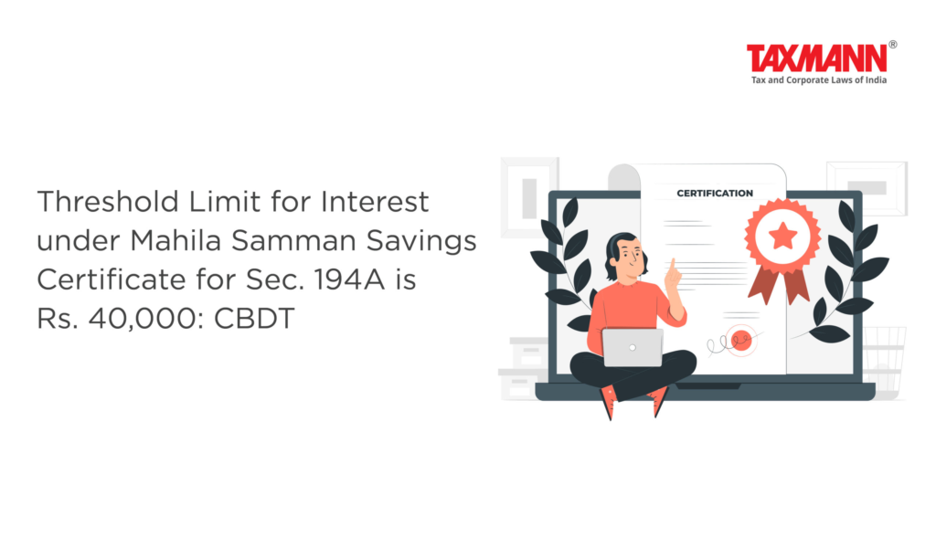 The post Threshold Limit for Interest under Mahila Samman Savings Certificate for Sec. 194A is Rs. 40,000: CBDT appeared first on Taxmann Blog.